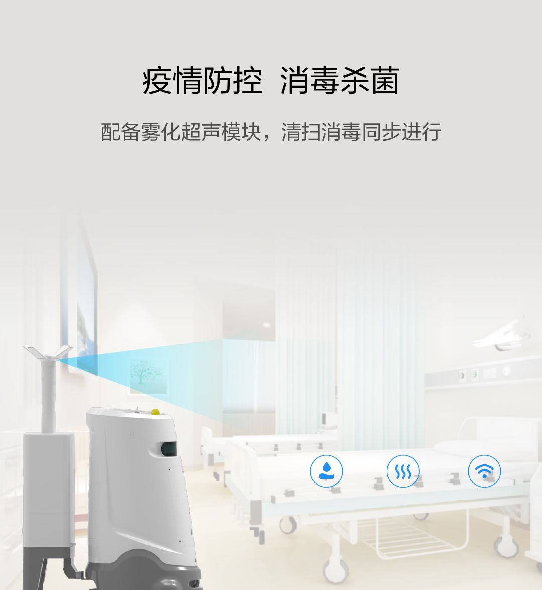 配备雾化超声模块,清扫消毒同步进行